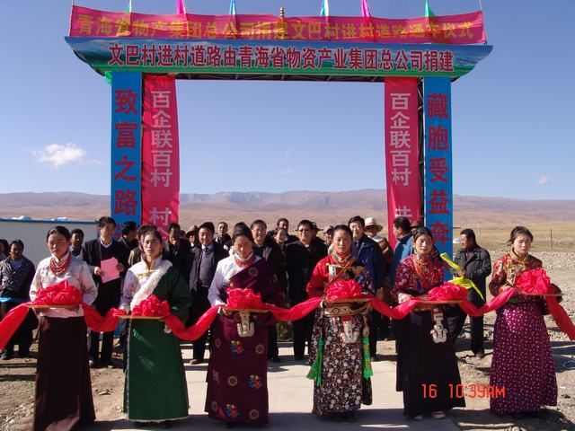 2011年10月16日,集團(tuán)總公司在共和縣江西溝鄉(xiāng)元者村舉行"百企聯(lián)百村"捐建共和縣江西溝鄉(xiāng)元者村黨員活動室、科普文化室、醫(yī)療衛(wèi)生室和黑馬河鄉(xiāng)文巴村進(jìn)村道路工程項目交接儀式。集團(tuán)公司總經(jīng)理王玉輝、黨委書記白家林、紀(jì)委書記王仁芬、共和縣人大常委會主任尕瑪才讓、共和縣委常委、組織部長官卻南見以及集團(tuán)"百企聯(lián)百村"活動領(lǐng)導(dǎo)小組成員、總部全體職工、捐建工程項目部工作人員、施工方代表和有關(guān)縣、鄉(xiāng)、村領(lǐng)導(dǎo)、村民代表60余人參加交接儀式。