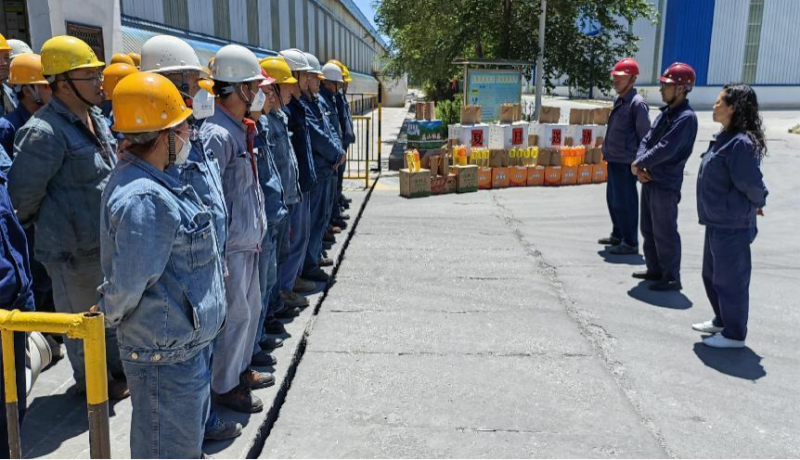 進(jìn)入酷暑三伏、氣溫持續(xù)“狂飆”。為保證物產(chǎn)工投公司生產(chǎn)安全、平穩(wěn)、有序進(jìn)行,切實(shí)維護(hù)好高溫區(qū)域廣大干部職工的身體健康和生命安全,做好生產(chǎn)一線防暑降溫工作,7月21日下午,公司黨政班子成員及公司工會(huì)負(fù)責(zé)人一行前往車(chē)間、班組繼續(xù)開(kāi)展“夏日送清涼”慰問(wèn)行動(dòng)。