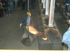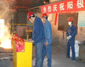2012年7月7日上午11點(diǎn)零19分,青海物產(chǎn)工業(yè)投資有限公司10萬噸電解鋁/年升級改造項(xiàng)目,簡易陽極組裝車間大門前鞭炮齊鳴。青海物產(chǎn)工業(yè)投資有限公司黨總支副書記、青海長春炭素有限公司總經(jīng)理王松華,公司常務(wù)副總經(jīng)理、項(xiàng)目副總指揮常海寧,工業(yè)投資和長春炭素公司副總經(jīng)理姜紅萍,公司副總經(jīng)理張秉瑜,總經(jīng)理助理范登福等公司領(lǐng)導(dǎo)和各車間、部室的職工出席了簡單的點(diǎn)火澆鑄儀式。王松華同志按下了點(diǎn)火按鈕鄭重宣布澆鑄正式開始。當(dāng)中頻爐工將第一爐鐵水倒入抬包時(shí),標(biāo)志著新陽極組裝車間正式投產(chǎn)運(yùn)行。